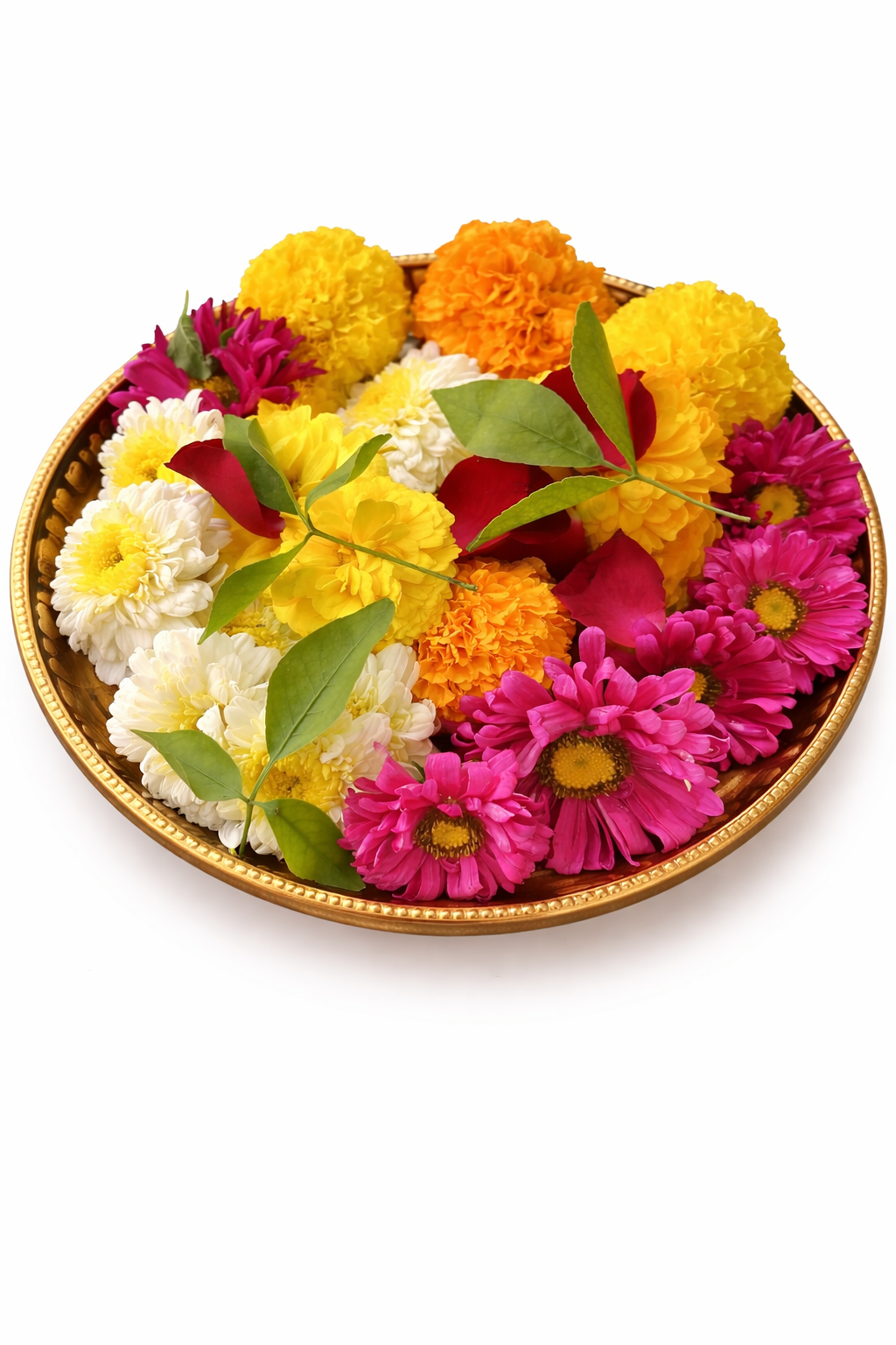 This pack contains 100 gram mixed flowers ( Orange and yellow marigold, Sevanti, Aster) and 3 belpatti.