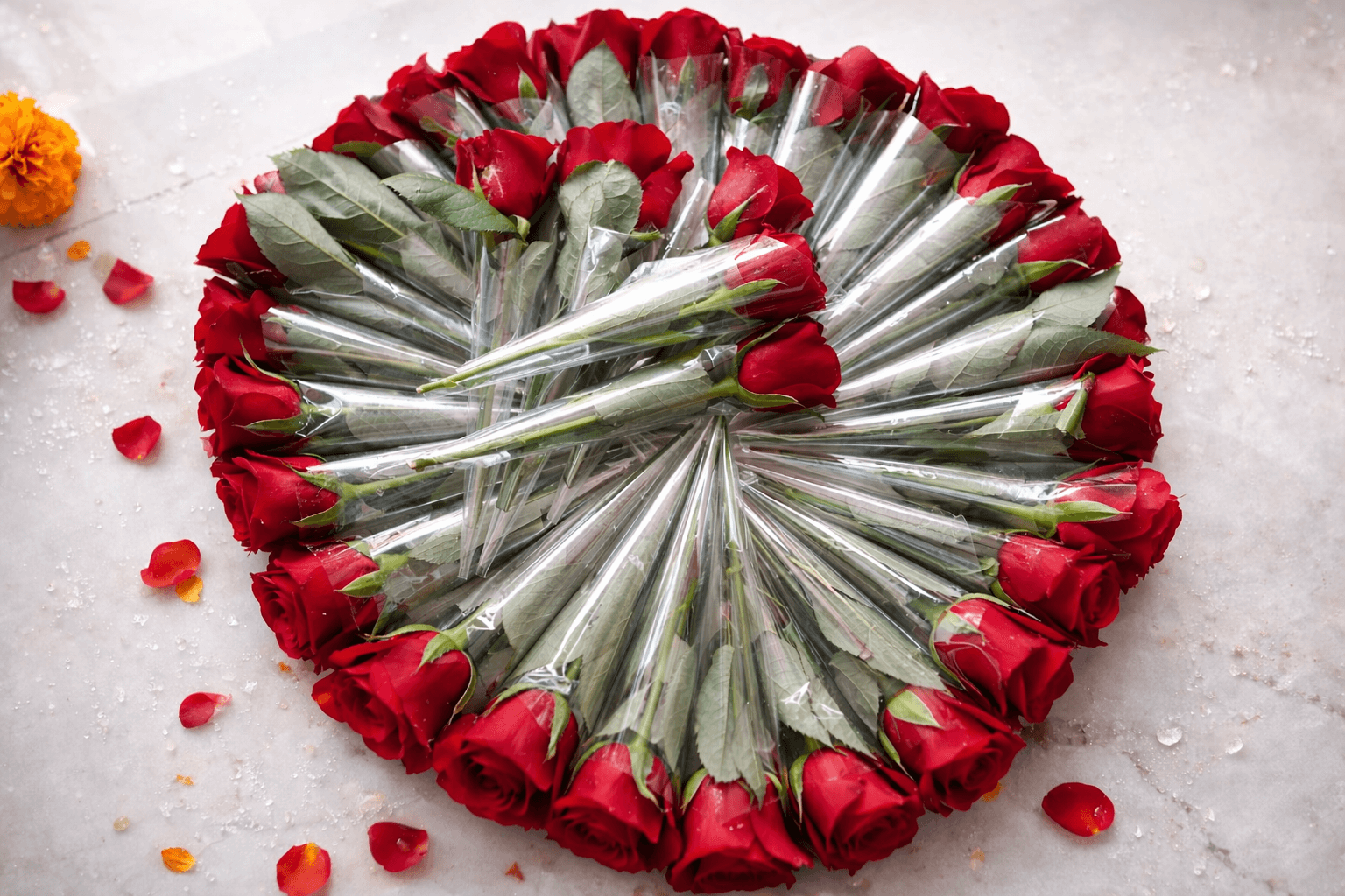 Express love, elegance, and heartfelt emotions with this stunning bunch of 50 fresh roses. Carefully handpicked for their vibrant color and freshness, each rose symbolizes love, passion, and celebration.